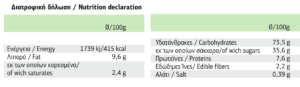 Μπορεί να περιέχει ίχνη από: αυγά, αραχίδες, σόγια,καρποί µε κέλυφος, σησάµι,γάλα, θειώδη και άλλους ξηρούς καρπούς.