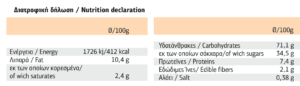 Μπορεί να περιέχει ίχνη από: αυγά, αραχίδες, σόγια, καρποί µε κέλυφος, σησάµι, γάλα, θειώδη και άλλους ξηρούς καρπούς.
